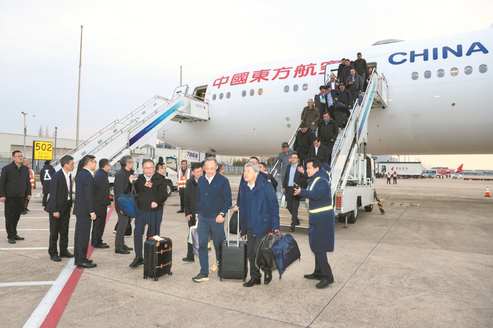 出席会议的在沪全国政协委员昨天傍晚乘班机返回上海。 本报记者 叶辰亮摄