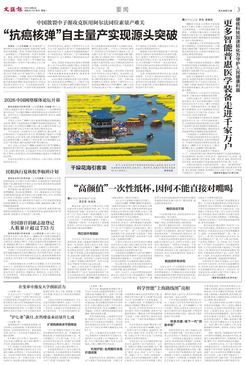 本报讯(记者许琦敏)有“抗癌核弹”之称的阿尔法(α)同位素能够“高能短程”地精准杀死癌细胞。然而,我国医用级α同位素一直依赖进口,严重制约新一代放疗药物研发。最近,我国大科学装置中国散裂中子源终于打破这一局面,实现了三种关键医用α同位素的量产,未来年产量可满足上百万患者的需求。