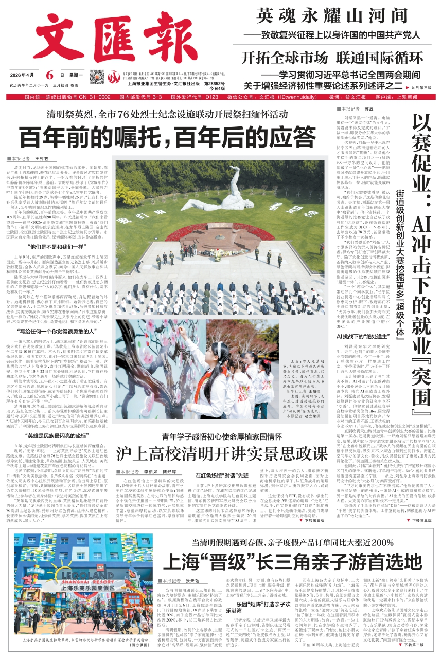 在红色场馆上一堂特殊的大思政课,聆听烈士后人讲述革命故事,青年学子在沉浸式体验中感悟初心使命;到烈士陵园祭奠英烈,在对先烈的缅怀与感念中强化责任担当……清明时节,沪上多所高校围绕这一传统节气,开展形式丰富、意蕴深厚的活动,以实景思政课引导青年学子传承红色基因、厚植家国情怀。
