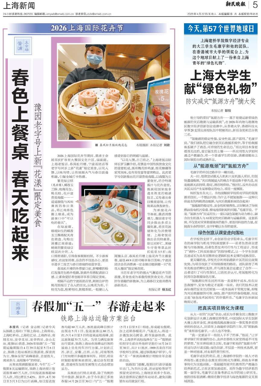 上海建桥学院数字经济专业的大三学生毛康宇和他的团队,在香港城市大学的领奖台上,为这个地球日献上了一份来自上海青年的“绿色礼物”。