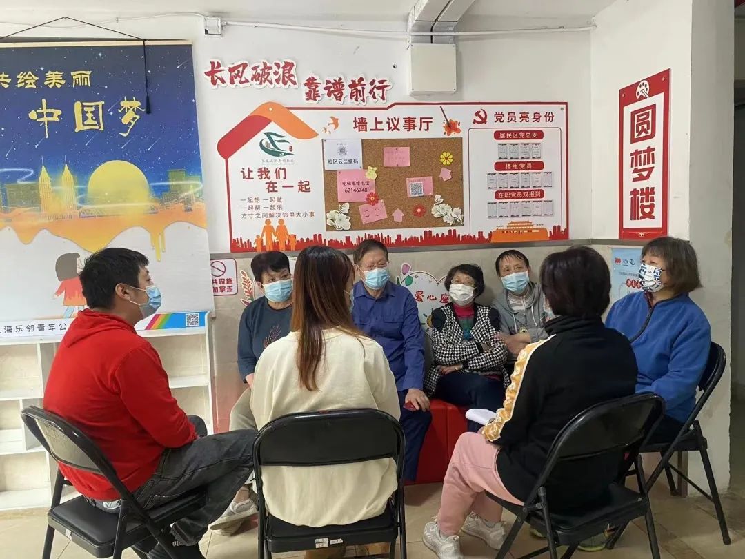 聚“圆心”延“半径”,“小空间”“大能量”。走进115号楼“圆梦楼”,红色元素随处可见,墙上议事厅、党员亮身份、公告栏、居民公约,丰富的内容与红色文化相得益彰;再往里走,迎面而来的是“彩绘墙”,日光沐浴下的小桥、流水、人家相依相伴;旁边还有许多大小朋友自发绘制的画作,十分生动可爱……“圆梦楼”激活了楼组“红细胞”,满满正能量的版块“诉说”着楼内普通而又不平凡的小故事,居民们在出入间就与党建来个红色“碰撞”,在潜移默化中接受着熏陶和洗礼。“看,这是我的爸爸,妈妈说他是党员,这是他去年抗疫时的照片。”孩子用小手指着墙上的一张照片,脸上洋溢着满满的自豪感。