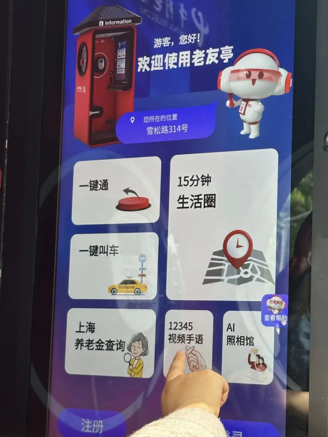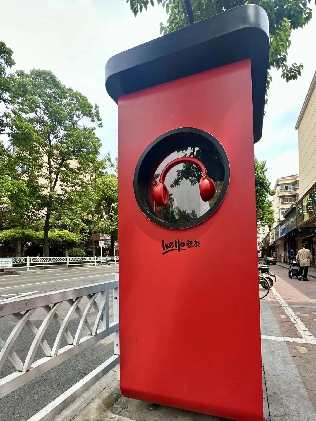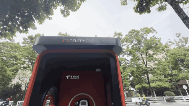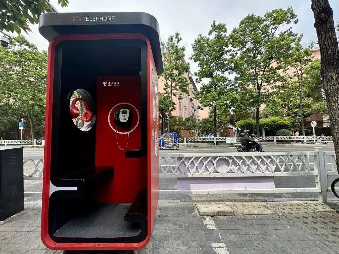这个于5月初正式投用的“Hello老友亭”,外观保留了传统公用电话亭的红色,敞开式的亭体内,一侧设有供居民驻足休息的座位,另一侧是一块触摸屏,公用电话机则挂在中间。