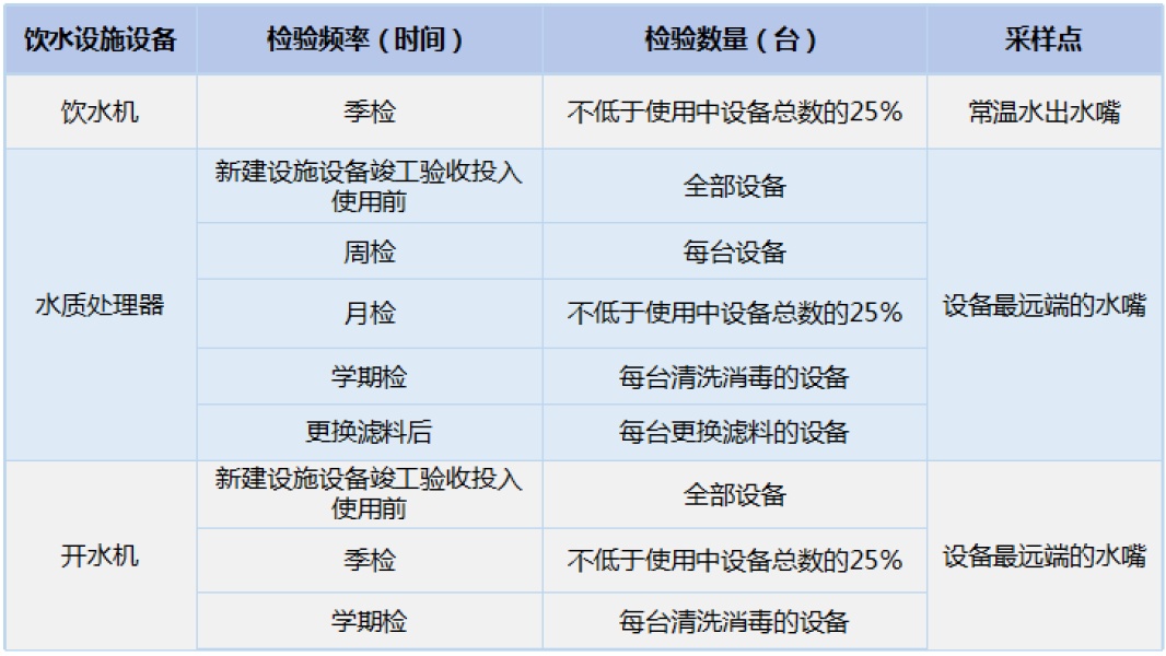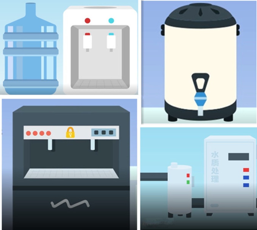 学校中用于饮水水质处理、存储、输送的设施设备,包括饮水机、水质处理器、开水机及其他开水加热、储存容器等。