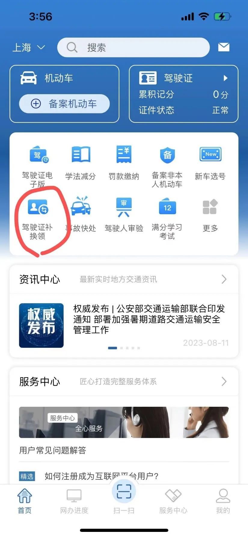 1.在手机上下载“交管12123”APP,在APP首页找到【驾驶证补换领】