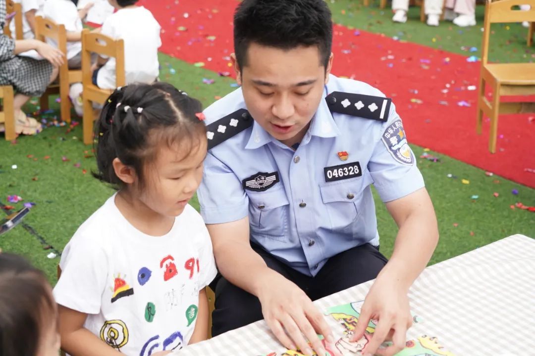 在热闹的反诈“T台秀”之后,民警带着孩子们完成了反诈涂鸦和反诈拼图等挑战环节,并向校方颁发了“亲子反诈示范校”的牌匾,为孩子们授予了“反诈小能手”奖状。“既是对孩子的一种安全普及,也能带动老师和家长对反诈知识的了解,很有教育意义和实践价值。”大三班学生宋雨昕的家长说。