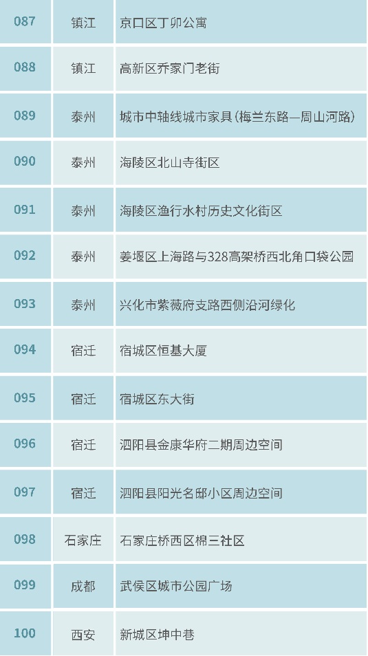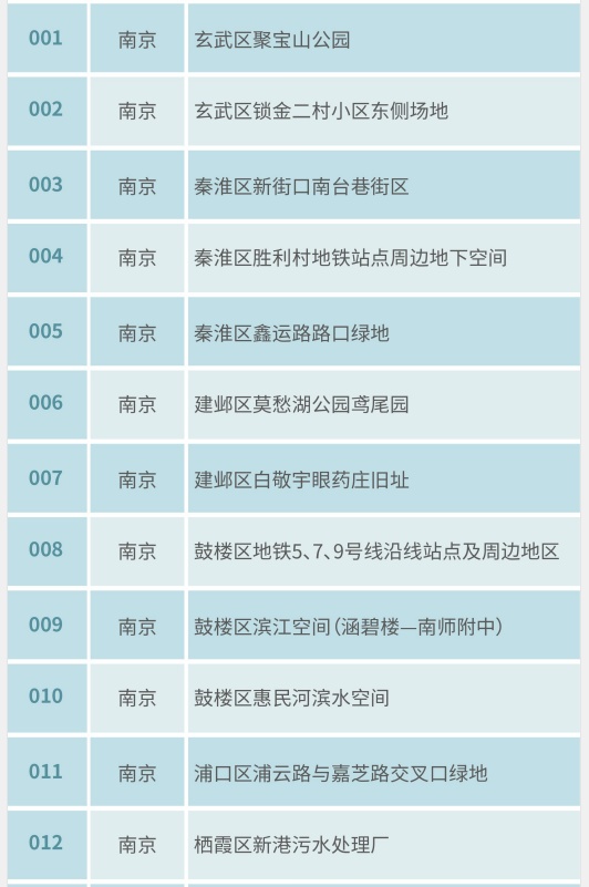 附:第十届“紫金奖·建筑环境设计大赛”100个设计基地名录