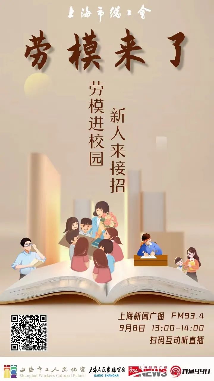 “劳模来了”电台节目是由上海市总工会指导、上海市工人文化宫携手上海人民广播电台《直通990》,为上海各级劳模工匠量身打造的弘扬三个精神的品牌电台系列宣传节目。