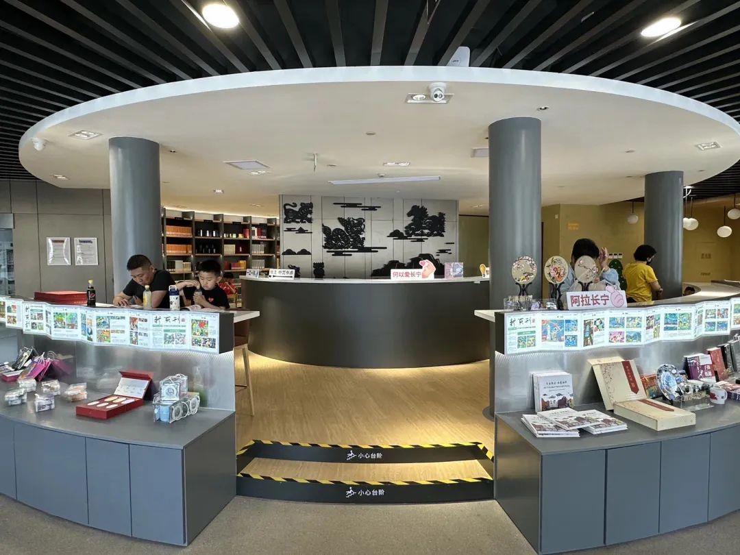 喜欢阅读和非遗文化的市民,一定不能错过位于非遗中心北楼1楼的新页书房·非遗主题馆。在这个面积约300多平方米的书房里,不仅可以带来长宁非遗内容的数字化阅读体验,还有一套结合人工智能、大数据、云计算的智慧书房体验服务系统,让读者体验“沉浸式”的线上线下阅读。