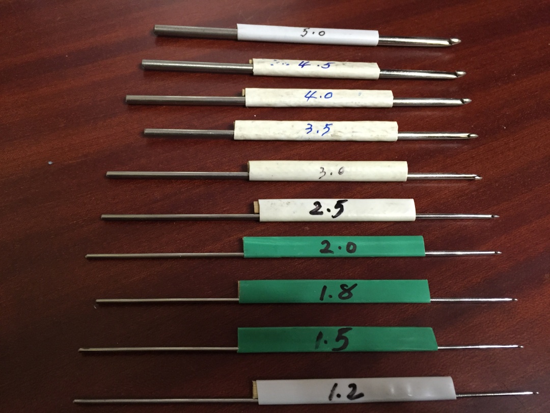 朵头花和码带花边的编结工艺较为简单,只消运用辫子针、长针、短针之类普通针法即可完成,而编结网眼手套时,要求所有网眼辫子的大小钩得一个样,整体协调一致;编结包袋则需要运用多种针法,用不同的花形就会结出不同的款式,连捏针捏线的手法也复杂多了,若掌握不当,成品就会不合格。