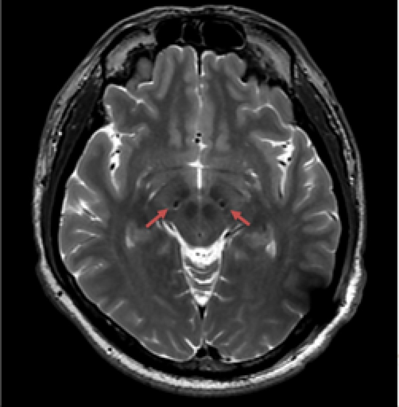 (患者在术后复查3.0T磁共振,提示电极位置精准)