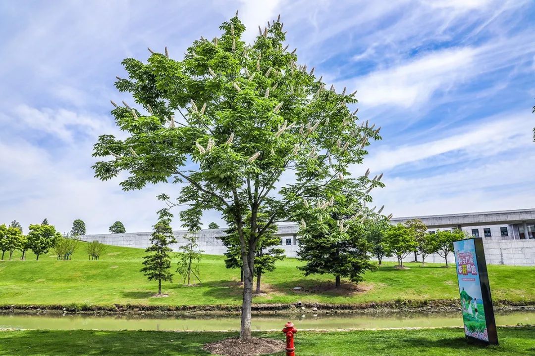 近年来,上海绿化部门为丰富行道树种类,推广开花类行道树,在申城多处引进种植了七叶树。