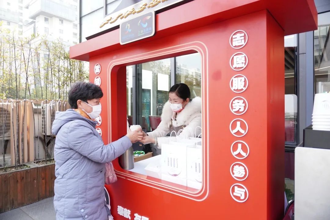 “我是上海市优秀志愿者,今天第一次来这里,还领到了热乎乎的现磨咖啡,感觉很温暖!”志愿者浦蕴霞说。