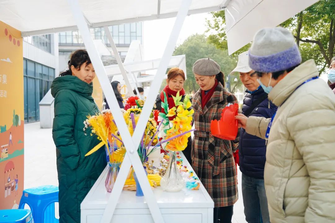 市集上,各色商品琳琅满目,本地农产品和特色食品、精致的手工艺品等应有尽有,不少居民携家带口前来参观。“旧物改造做成的手工艺品不仅美观好看,还能让居民感受到手工的魅力。”摊主李怀兰说。