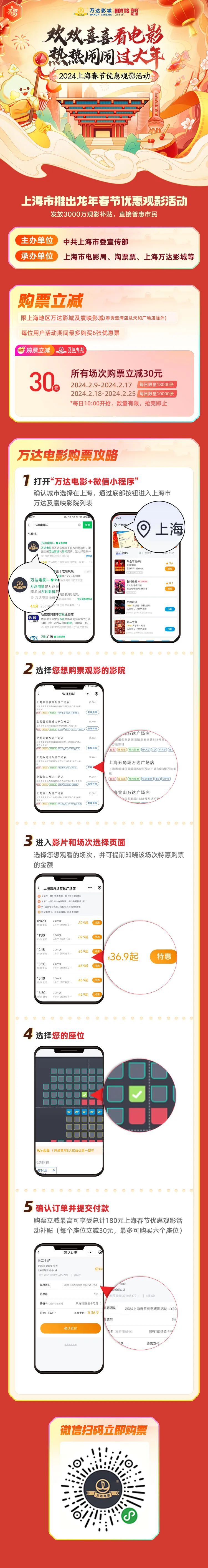 为进一步活跃春节电影市场,激发市民观影热情,由中共上海市委宣传部主办,上海市电影局联合业界头部企业承办的“欢欢喜喜看电影,热热闹闹过大年”2024上海春节优惠观影活动拉开帷幕,