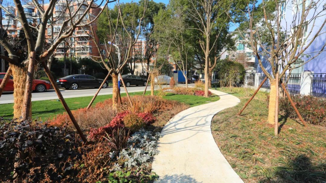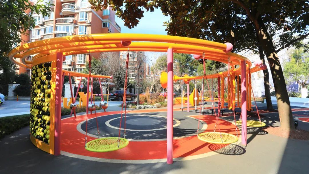 这座新建成的口袋公园位于龙茗路513弄街坊道路上,长86米、宽34米,由儿童活动场地与漫步道组成,占地面积为2100多平方米。公园原本是一处普通绿地,通过项目打造,摇身一变成为居民休闲运动的活力场所。项目负责人告诉记者,公园东侧紧邻闵行科技幼儿园,所以目前暂时命名为闵行科技幼儿园口袋公园。旁边有鸿发家园、东方御花园等小区,北侧为平阳五村居委会办公区域。综合地理位置和居民需求,项目改造从儿童视角出发,以音符元素为设计灵感,增添了秋千、攀爬架等孩子们喜欢的游玩设施,同时将红色、橙色等清新明快的色调融入公园场地的设计中,打造了一个满载欢乐的游乐场。此外,该块区域过去人车混行,存在一定安全隐患。这次改造将场地巧妙“活化”,在公园中开辟了人行步道,居民出行更方便。针对原本植物过密遮挡阳光的问题,公园同时在三个区域种植不同种类的绿植,形成错落有致的绿化景观,居民们可以尽情拥抱绿意。“公园整体设计采用自然流畅的曲线,花坛边沿做成了弧线形的白色座椅”,项目负责人表示,“便于居民‘遛娃’或者锻炼时在此休息片刻。”靠近居委会办公区域的街角处,设计师别出心裁地设置了一块艺术“长廊”,这一面彩色积木块组成的景观墙,带来满满的文艺气息,与口袋公园一同组成别具一格的街角景色。记者:吴俊艳