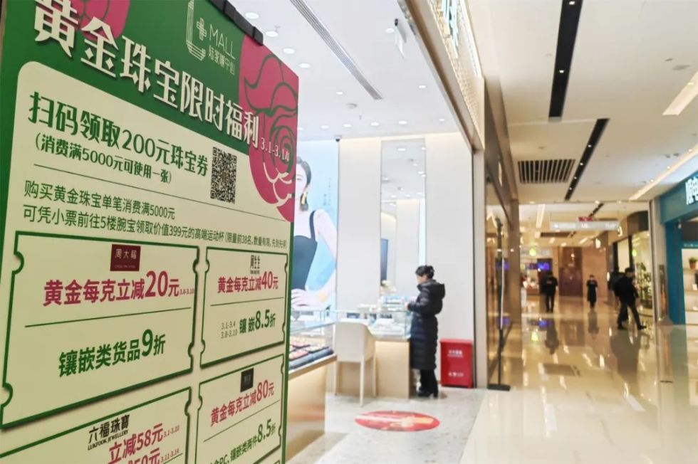 冬装减价、春装上新、餐饮等位……走进陆家嘴中心L+Mall,消费的“春意盎然”扑面而来。“三八”妇女节大促,黄金珠宝品类是其中的“重头戏”。