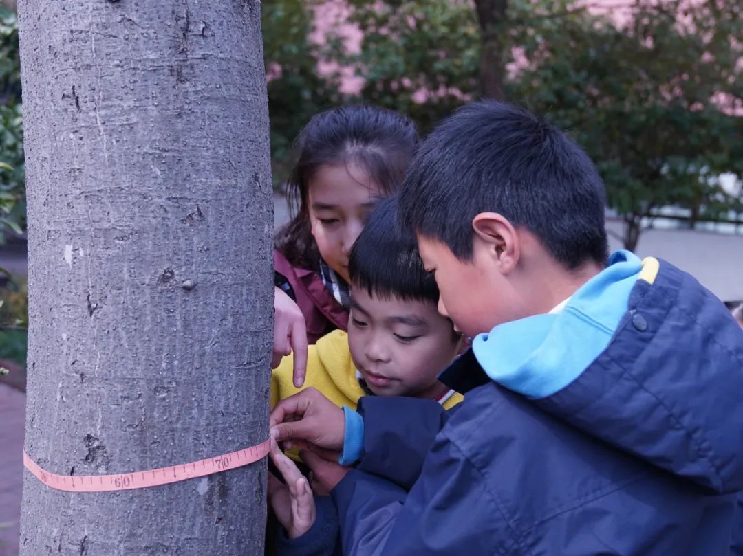 通过一周的实践体验,不仅增强了学生们对自然的感知,也培养了他们的观察力和环保意识。学生们在“了解一棵大树”记录表上认真记录下大树的名字、拿着卷尺为大树“量腰围”、听一听大树的声音、闻一闻大树的味道、摸一摸大树下的土壤、再把大树的树干拓印在纸上、贴上大树的叶子。