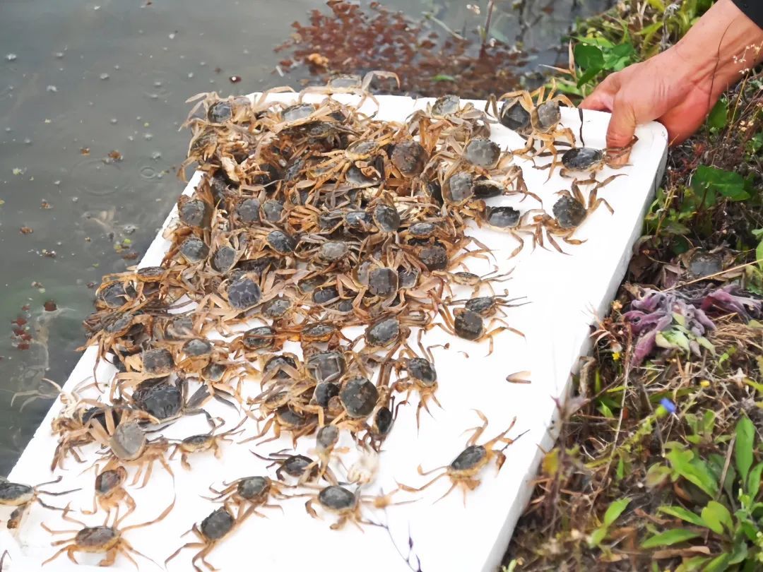 为保证在金秋时节大闸蟹优质肥美,从选苗、运苗、放苗到养殖管理,瀛尚水产养殖基地工作人员在每一道工序上都做足了功课,市、区水产技术专家也到场指导。“要尽快开箱,用盐水消毒后再投放到水塘,先缓慢过水,让蟹苗先熟悉新环境,再慢慢下水适应,过两三天就能看出蟹苗的成活率了。”临沧市水产技术推广站副站长薛飞边讲解注意事项,边向大家动手演示。