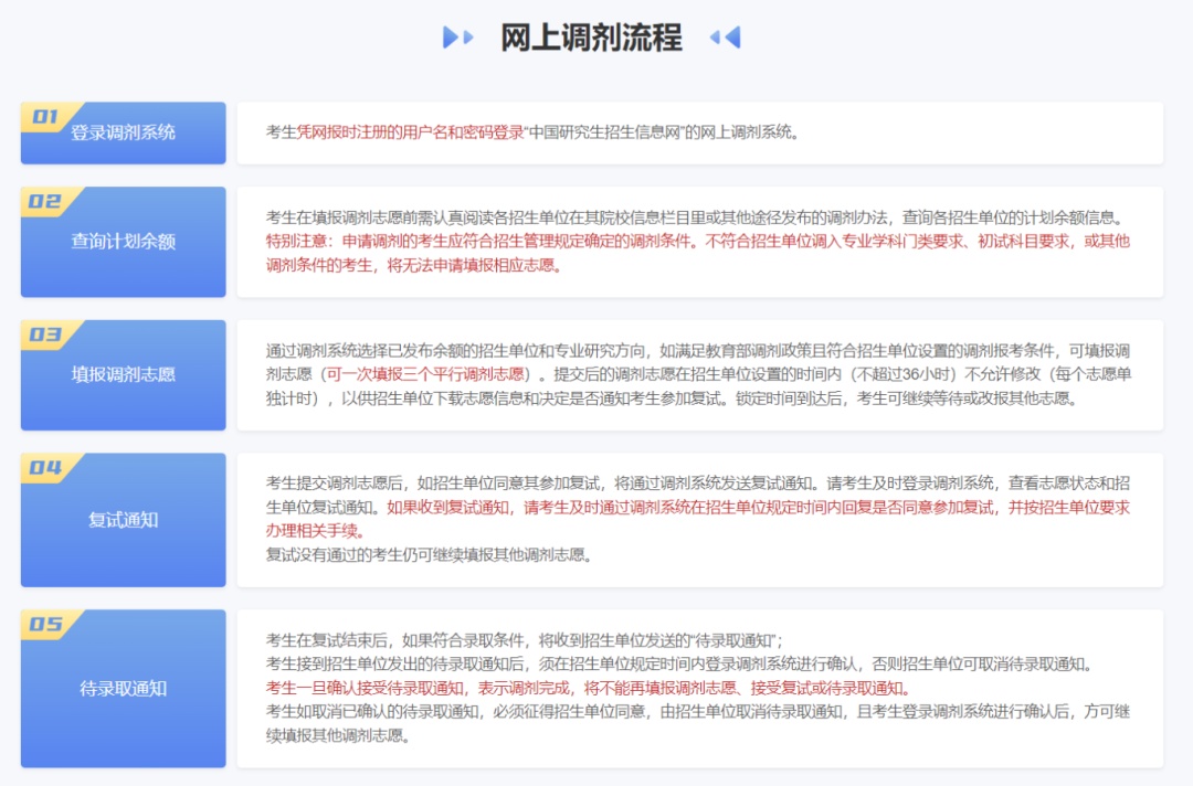 考研调剂流程一般分为以下几个步骤,要避免无效申请耽误宝贵的时间。
