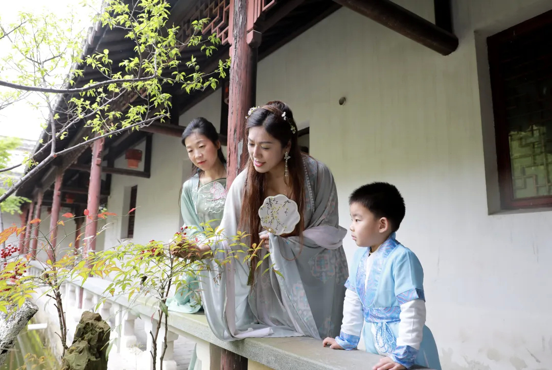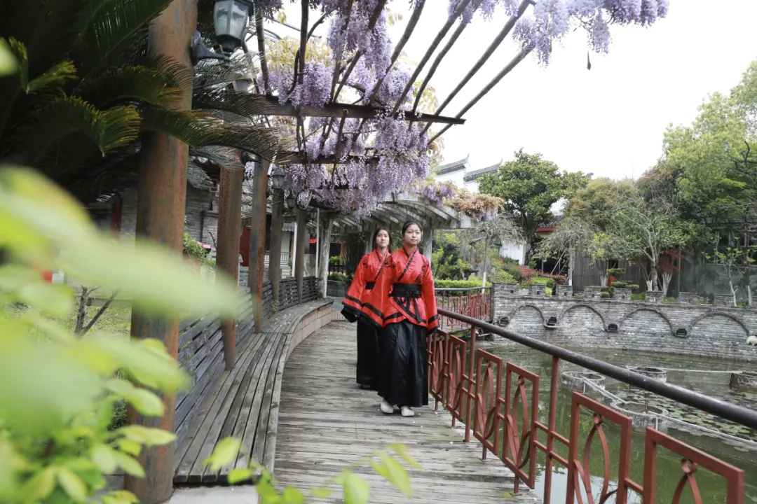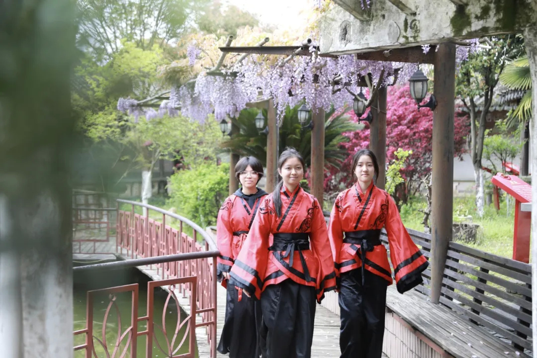 紫藤树下,红枫树旁,古城墙边……一群群仿佛从画里走出来的年轻人言笑晏晏、罗衣飘飘。