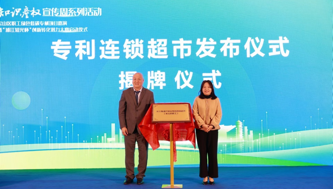 现场启动“浦江知光杯”创新转化潜力大赛,并揭牌“长三角浦江知光专利超市(宝山区职工)”和“长三角浦江知光专利超市(宝武碳中和园区)”。