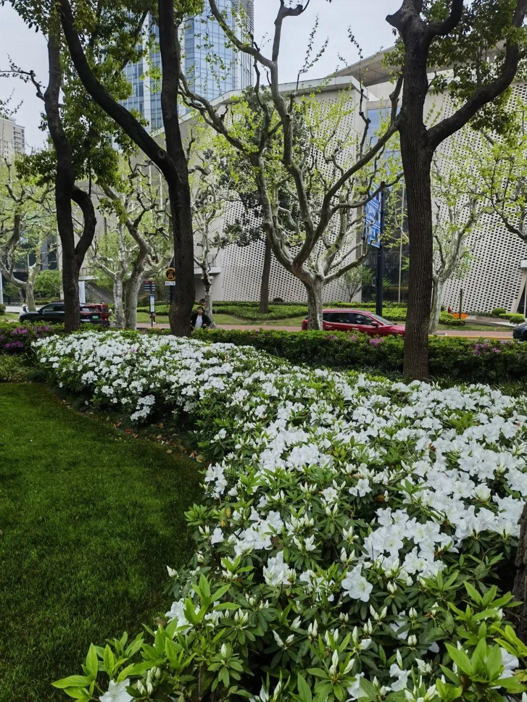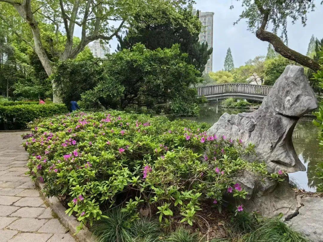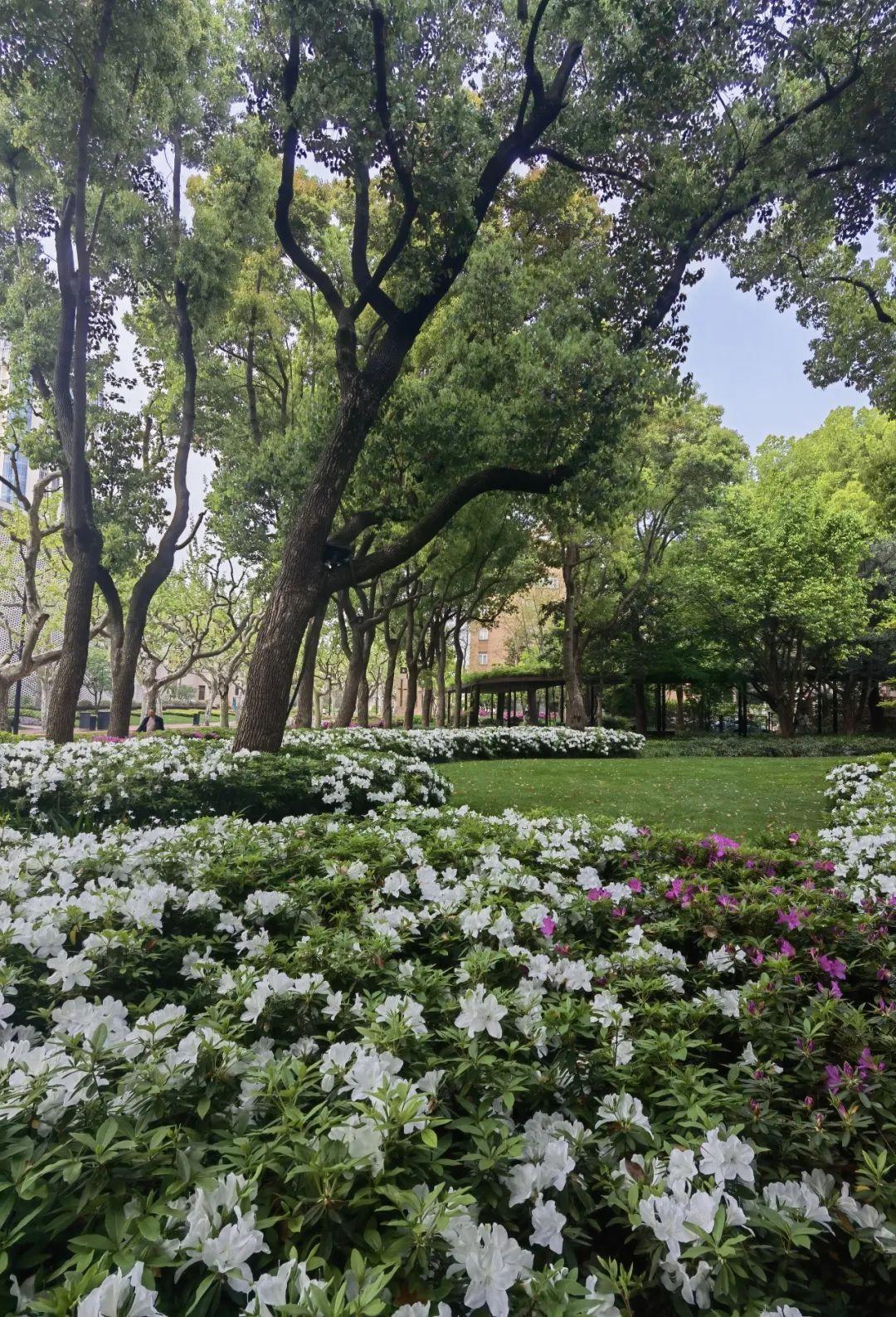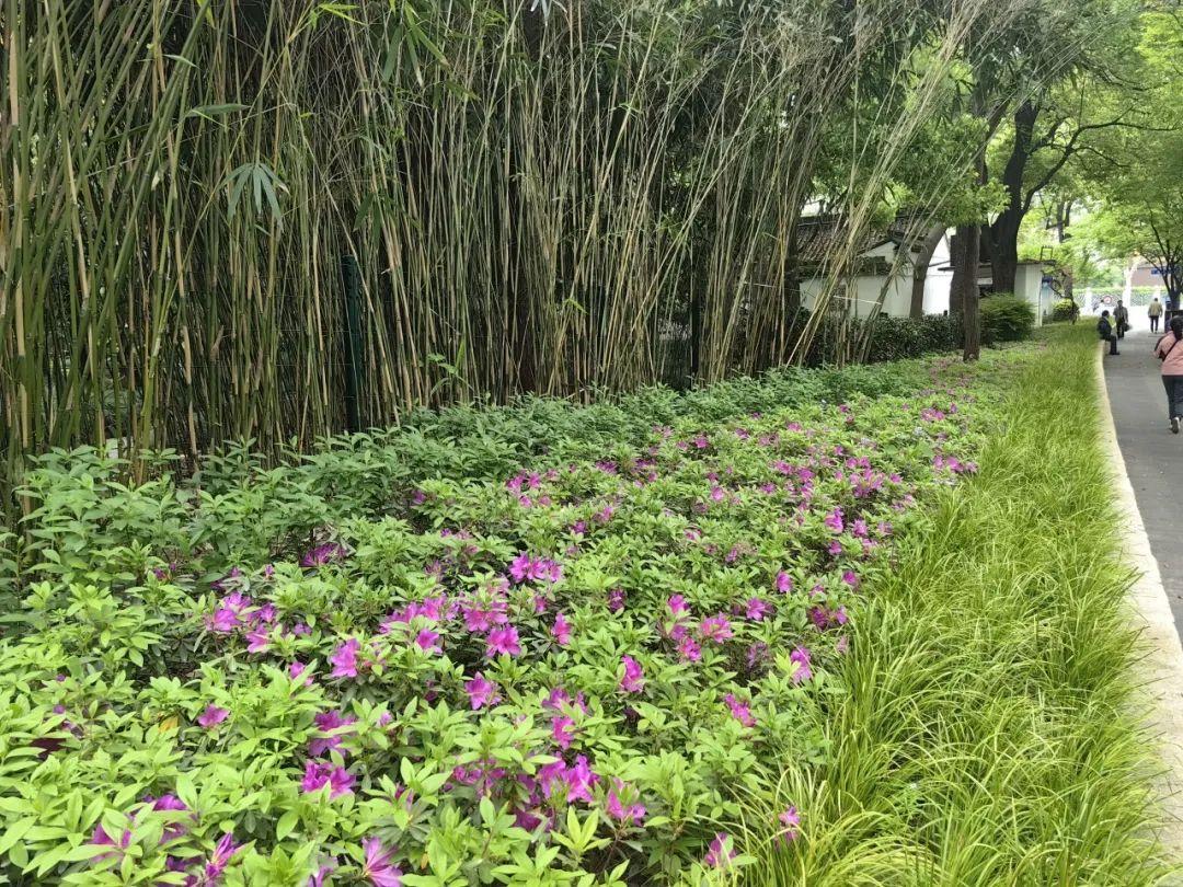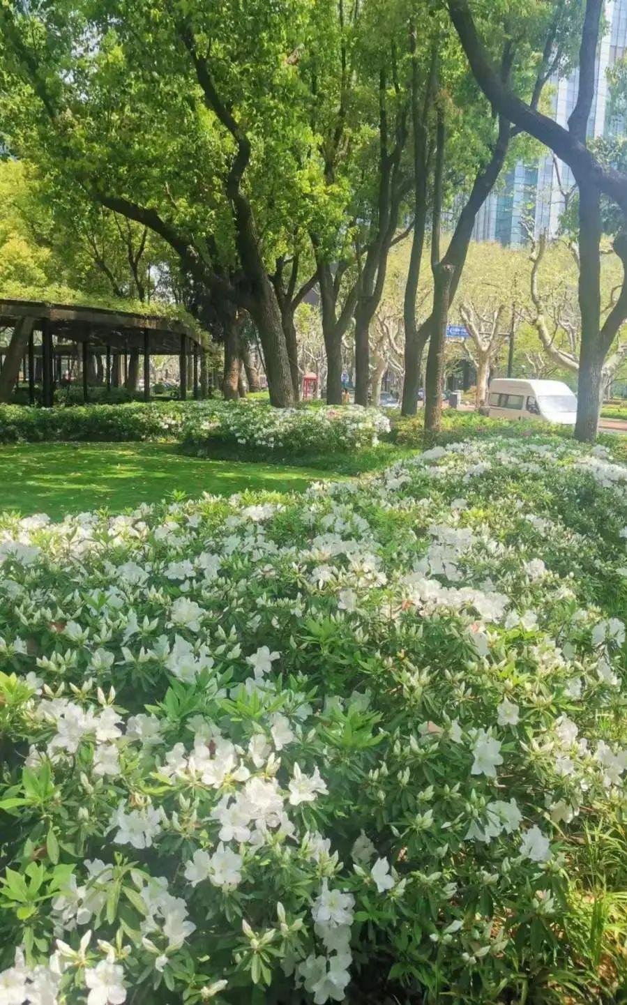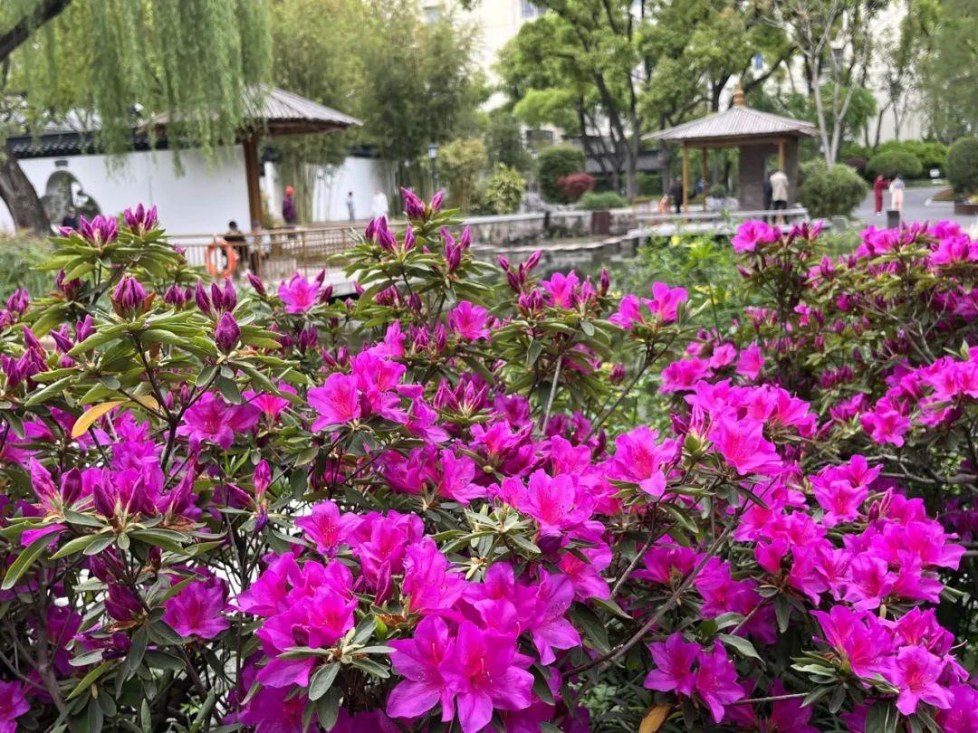 走进徐汇街头绿地,尽是映山红的鲜艳绚烂,婀娜多姿的毛鹃、紫鹃披着春光,伴着花香,醉了游人,难怪唐代诗人白居易曾写诗感慨“花中此物似西施,芙蓉芍药皆嫫母”。