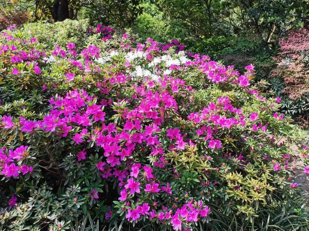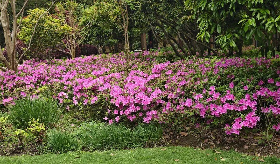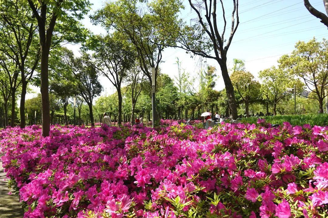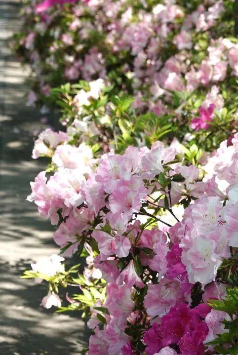 徐汇各区属公园的春鹃、夏鹃、东鹃、西洋鹃开得正旺,恣意盛放的杜鹃花似点点星火闪烁于路边,在春日暖阳下呈现一派璀璨风光,一丛丛、一簇簇如云朵点缀,繁盛无比、随处可见,美轮美奂。