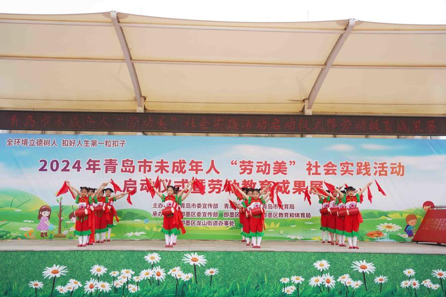 4月28日,2024年青岛市未成年人“劳动美”社会实践活动启动仪式暨劳动教育成果展在即墨区龙山中心小学举办。