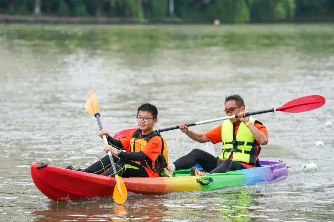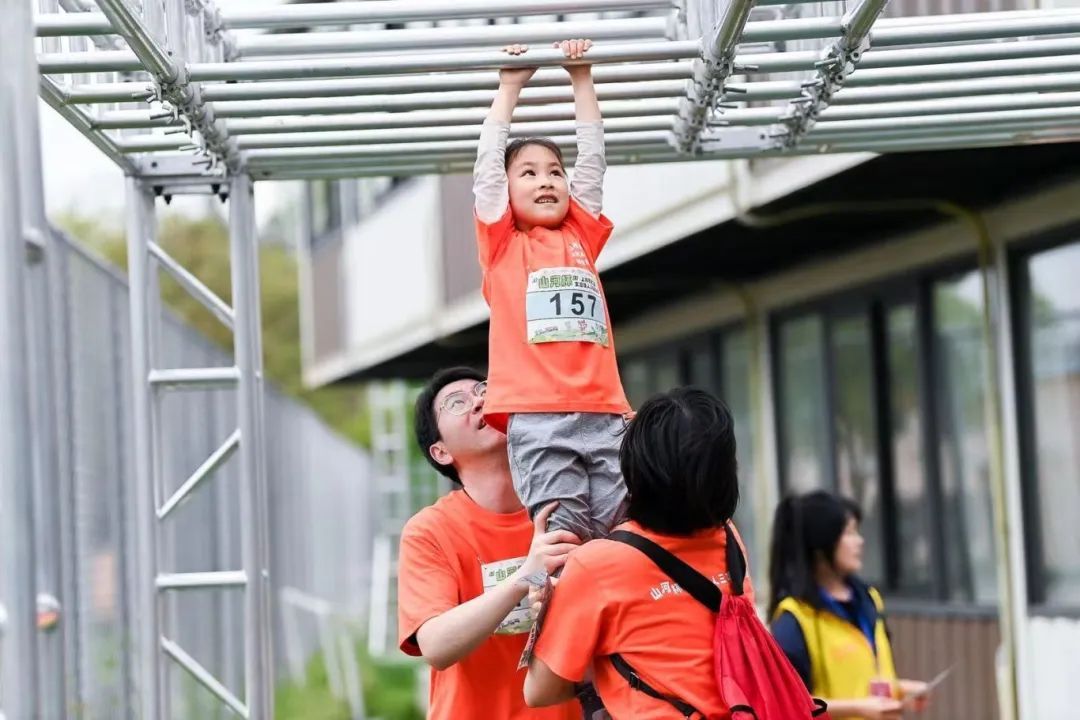 比赛现场“热辣滚烫”。水面上,皮划艇奋勇向前,桨板激起的层层浪花与孩子灿烂的笑容交相辉映,而岸边的家庭早已摩拳擦掌跃跃欲试。陆地上,翻滚轮胎、千米追逐、匍匐前进需要全员完成,不仅考验参赛家庭的耐力和技术,更考验家庭成员间的协作性。翻山越岭、空中接力和直击云霄均为“高空作业”,力量和速度的比拼、智慧与体力的较量,爸爸托着孩子,妈妈呐喊助威。