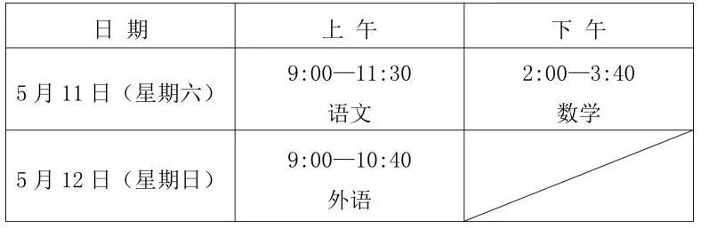(2)5月11日下午数学科目考试,2:15起禁止考生进入考点考试,3:10后考生可提前交卷出场。