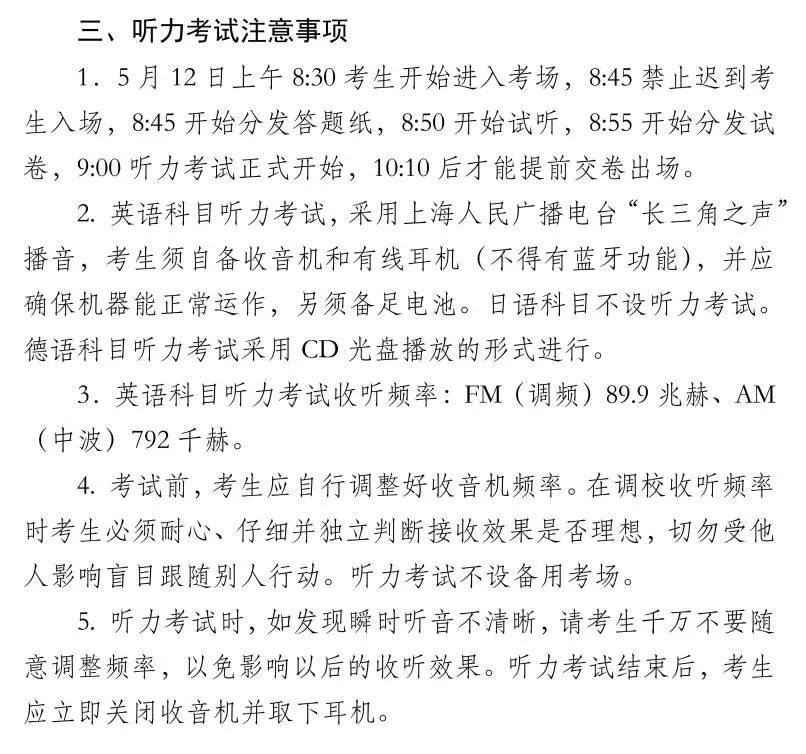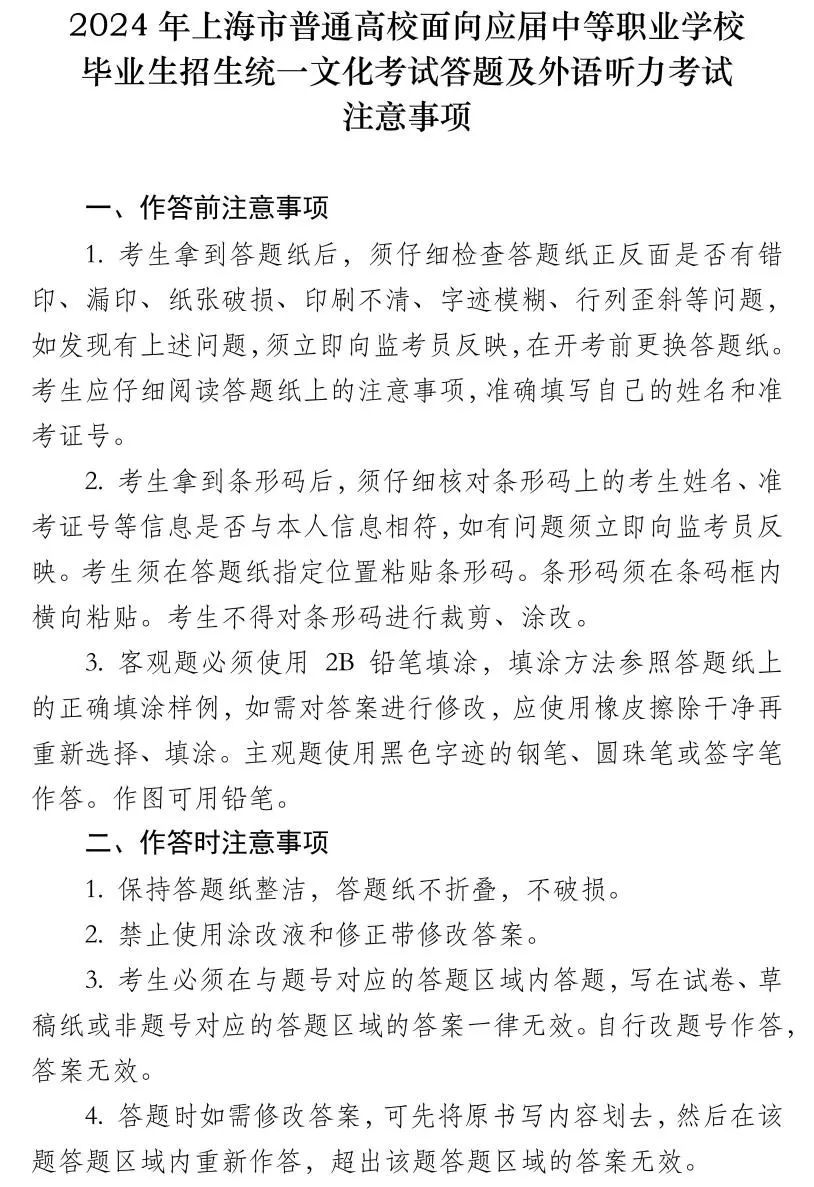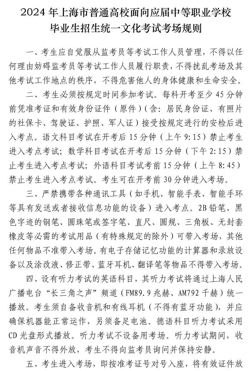 为确保考生能够顺利参加考试,上海市教育考试院提醒考生注意以下事项: