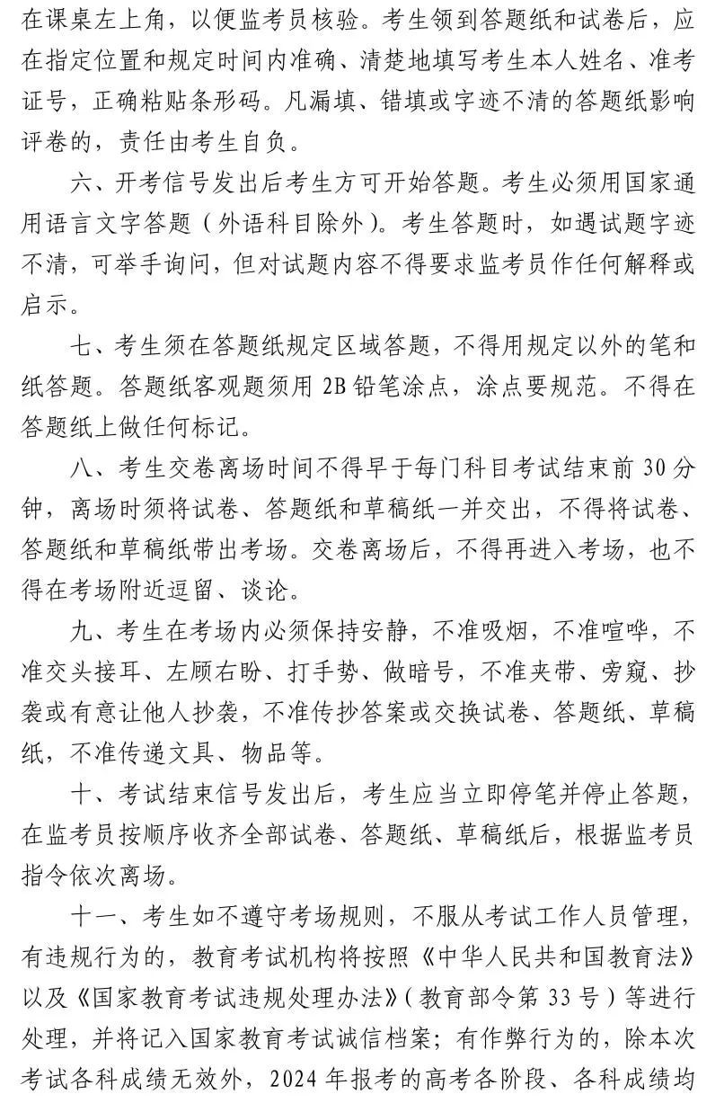 考生须自觉遵守考场规则,诚信考试。如有违规、违法行为将按《中华人民共和国教育法》《国家教育考试违规处理办法》《中华人民共和国刑法》《最高人民法院 最高人民检察院关于办理组织考试作弊等刑事案件适用法律若干问题的解释》严肃处理。
