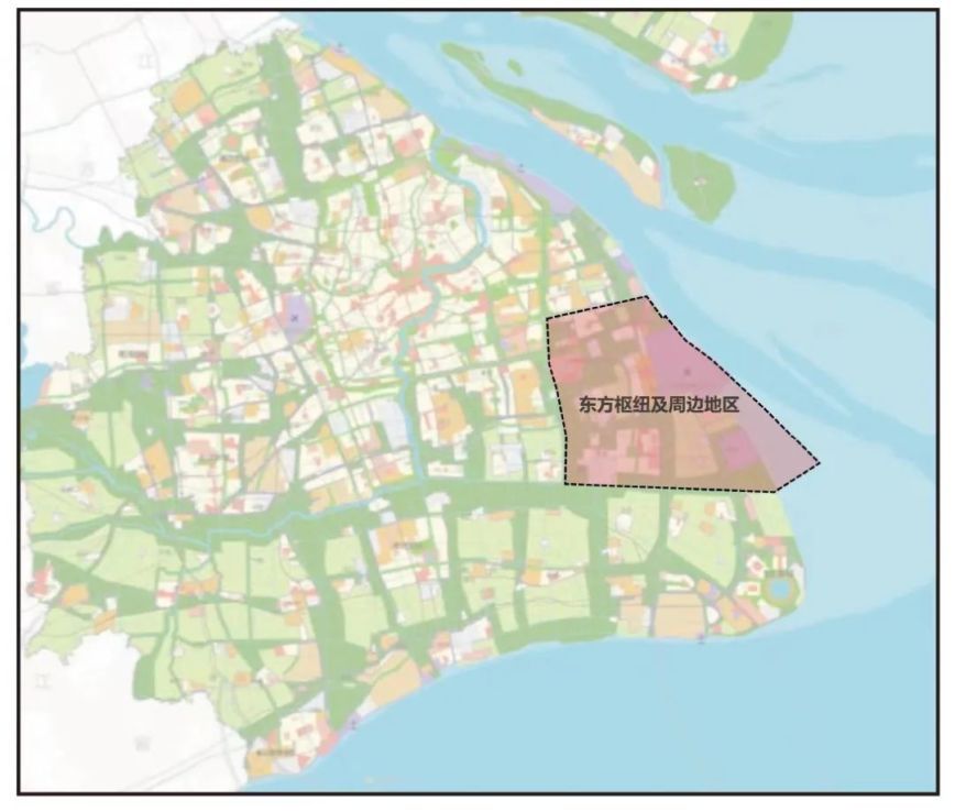 东方枢纽及周边地区位于浦东中部,涉及祝桥、川沙、惠南、宣桥、老港等镇,规划范围北至川杨河、西至沪芦高速、南至大治河、东至海岸线,总面积约510平方公里。该地区历史文化底蕴深厚,生态优势显著,产业门类齐备。规划以浦东国际机场和上海东站为内核,将基于站场城融合发展和区域城镇联动,充分发挥超级工程驱动超大城市高质量发展的战略作用。