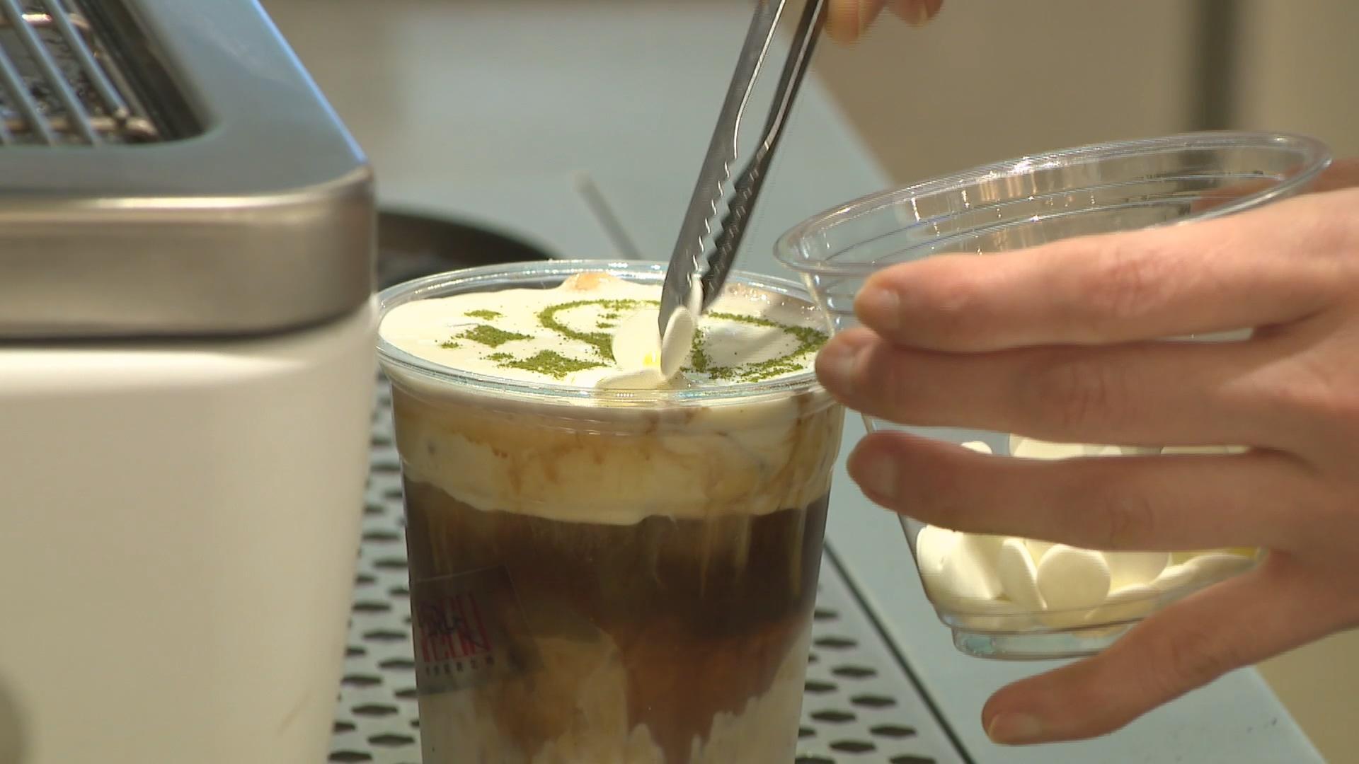 来自复旦大学大二的日籍留学生丹美雪特地点了“山茶花特饮拿铁联名款咖啡”。醇厚的奶香、狗狗的拉花、再放上一瓣山茶花,香飘四溢的特饮透射出浓浓的咖啡文化。“在日本的时候,我从初中开始就看她们的演唱会,想不到这次她们在上海首开演唱会了,特别期待演唱会能够举办成功。得知这里有联名款的咖啡,今天特意过来点了山茶花拿铁,咖啡上面有芝士奶盖,还有山茶花工厂的图案,挺好喝的,很浓郁。”