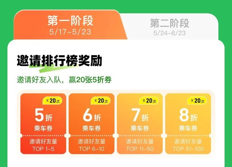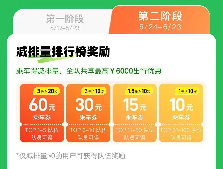 第二阶段(绿色出行):5月24日至6月23日。
