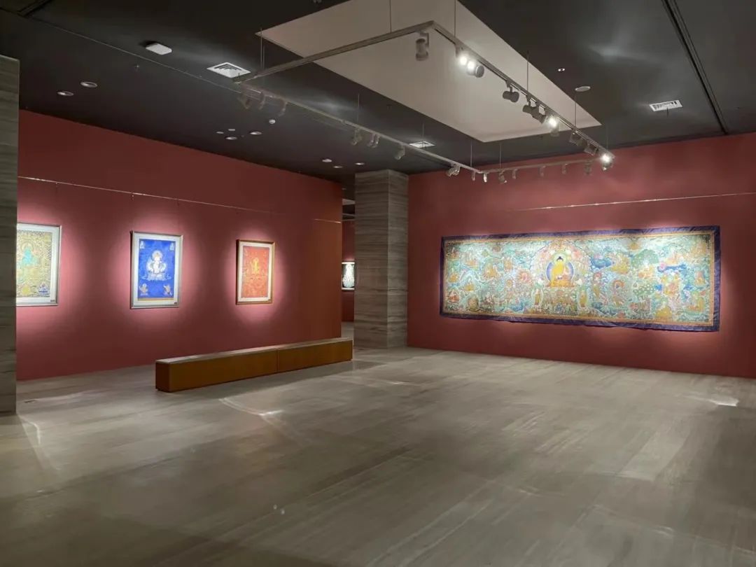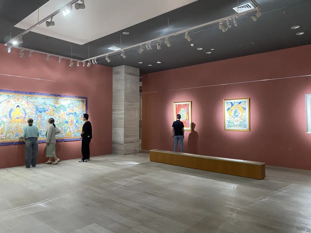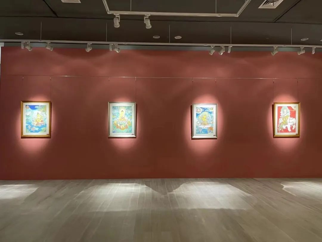 走进美术馆一楼展厅,一幅幅色彩明亮、绘制精美的唐卡作品映入眼帘。据悉,热贡唐卡因发祥于青海省黄南州同仁市隆务河畔的热贡地区而得名,是藏传佛教艺术的重要流派。