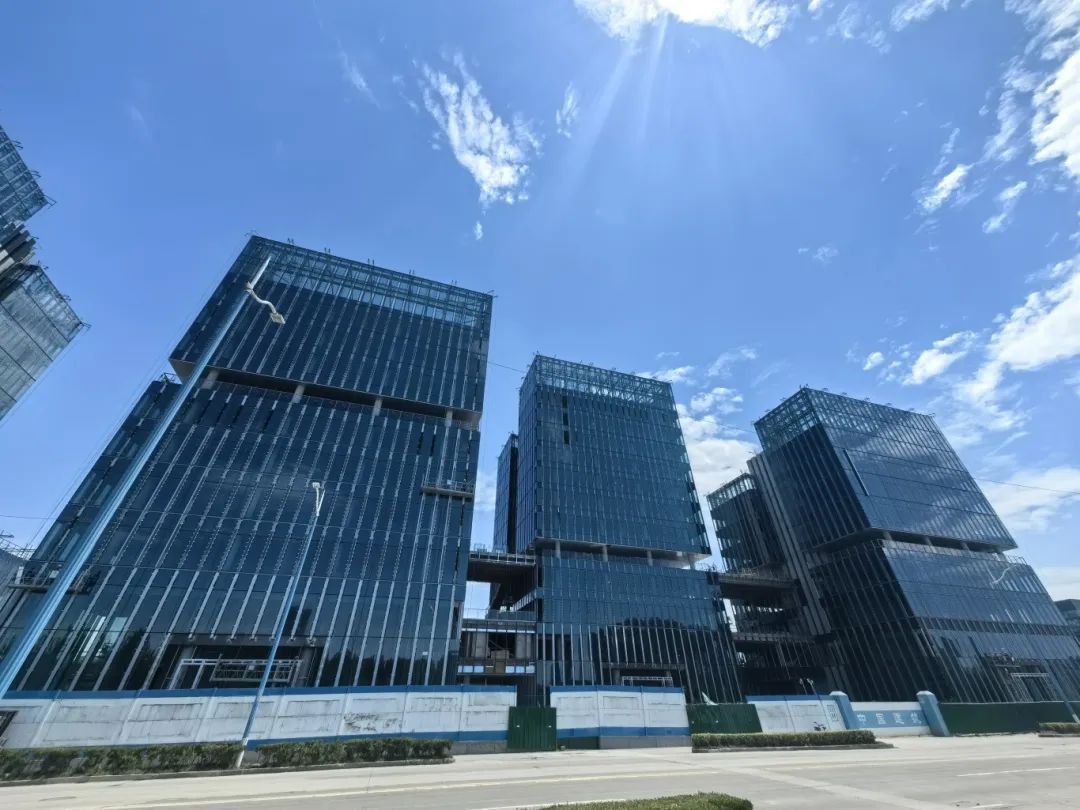 6月3日下午,记者在温州(嘉定)科技创新园二期项目建设现场看到,5栋大楼的主体结构及外立面装修已基本完工,工人正在加紧进行内部装修和室外工程施工。