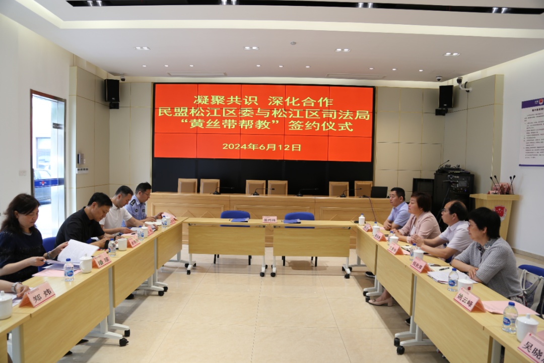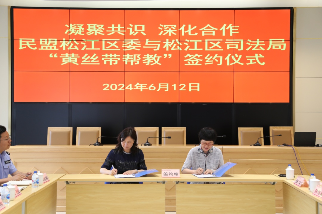 为贯彻落实民盟中央、司法部以及民盟上海市委员会、上海市司法局关于“黄丝带帮教”工作要求,建立对口联系长效机制,激发教育帮扶品牌效应,提升松江社区矫正工作整体合力与水平,6月12日,民盟松江区委与松江区司法局举办“黄丝带帮教”签约仪式。