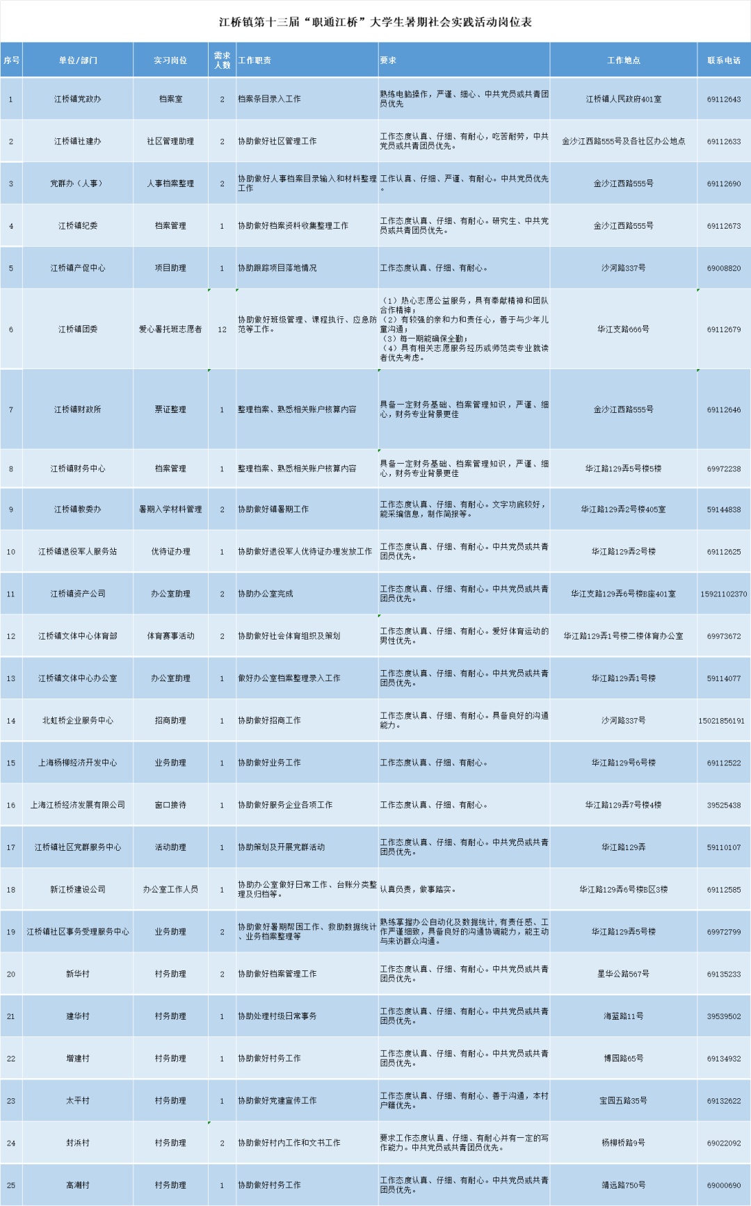全日制在校、应届大学生,江桥籍优先。