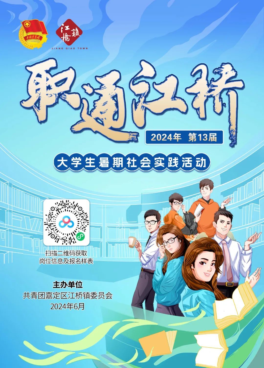 “职通江桥”暑期大学生实践活动是由江桥镇团委主办,联合全镇各机关、企事业单位共同开展的江桥大学生暑期挂职锻炼活动。项目启动于2012年,在每年的暑期7-8月举办,旨在为江桥大学生提供暑期挂职锻炼和社会实践的机会,让江桥本土大学生人才了解家乡,融入江桥发展,逐步引导大学生人才回流。12年来,“职通江桥”暑期实践项目累计吸引500余人次报名,提供暑期社会实践岗位327个。