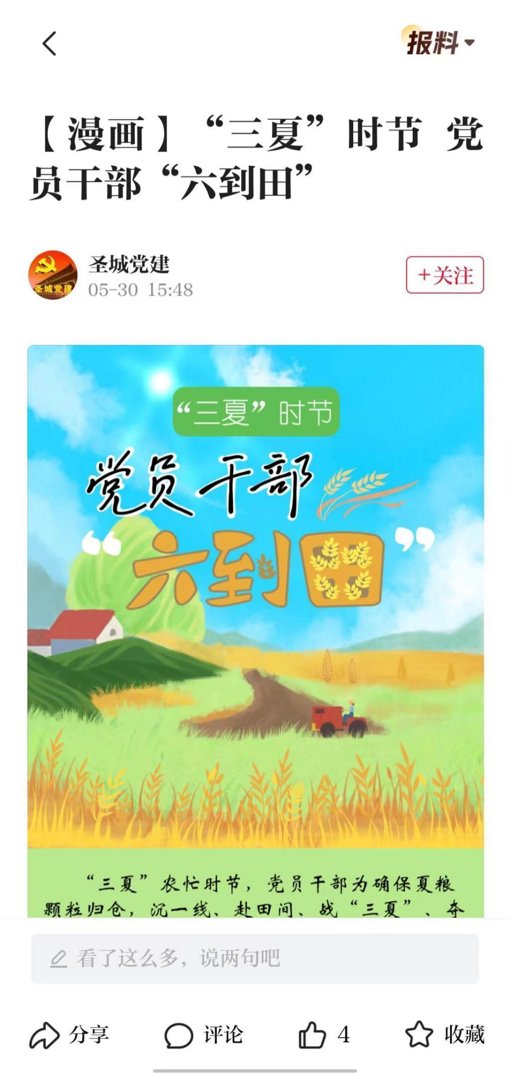 在300多篇同题作文中,大众号号主们围绕夏粮丰收、科技赋能、政府保障等多方面,采用图文、漫画、视频、快板等多形式,多个维度展现三夏好“丰”景。