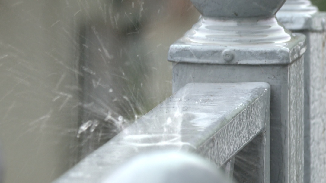 凌晨时分的暴雨过后,今天上午青浦城区的雨势逐渐开始减小,但是淅沥的雨水仍将淀浦河两岸笼罩在一片朦胧之中。行人们脚步匆匆,手中的雨伞在风雨中摇曳。车辆在湿滑的道路上缓缓行驶,车轮溅起的水花,为这雨中的景象增添了几分动态。