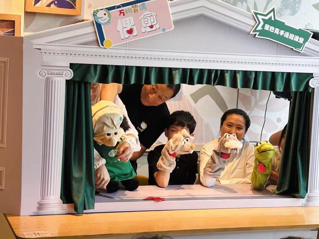 在一次次“偶遇”和“偶愈”的实践中,海派木偶戏被赋予具有时代特色的鲜活生命力。比如在为星巴克“无声咖啡师”排演偶剧时,项春雷为木偶定制了经典的绿色围裙,还对木偶的手掌进行改造,便于咖啡师把手语打准确,从而更好展现“无声咖啡师”这一群体的精神面貌;在市商贸旅游学校授课时,他和学生一起进行头脑风暴,创新探索声光电多媒体技术与木偶表演的结合点,帮助孩子们拓展未来创新创业的职业路径。