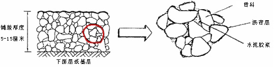 灌入式半柔性路面是将特殊级配的水泥胶浆灌入大空隙母体沥青混合料之中形成的路面,它通过骨料之间的相互嵌挤作用和水泥胶浆的自身强度,大大提高了路面抵抗荷载的作用性能,是一种既保留沥青砼路面全部使用品质,又具有水泥砼路面部分性能,“刚柔并济”的路面结构型式,同时具有耐油污、可着色等特性。