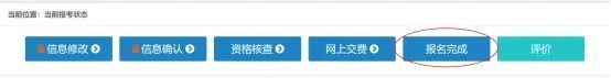 完成缴费后请及时点击【查看当前报考状态】确认报名结果,报名完成按钮显示为蓝色方可视为报名成功。