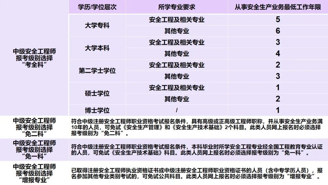有关报名条件的补充说明和安全工程专业的工程教育专业认证查验方法请点击“阅读原文”进行查看。