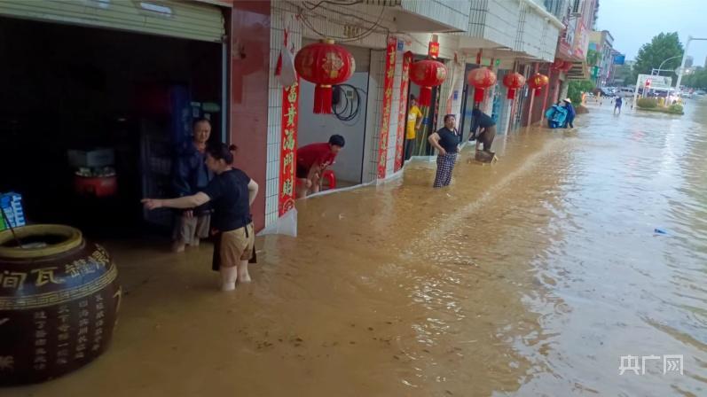 从6月23日到6月24日,景德镇累计雨量在159.2毫米,今天早上,强降水导致景德镇市出现城市内涝。在景德镇市浮梁县,由于暴雨和上游来水,昌江水位上涨,大水漫上沿河路,水深达50余厘米,造成严重堵车。早上六点钟,景德镇市浮梁县派出警力,在涉水车辆涉水路段设置警示标志和警戒带,并通知拖车把涉水车辆托运到安全地带,确保人民群众的财产安全。