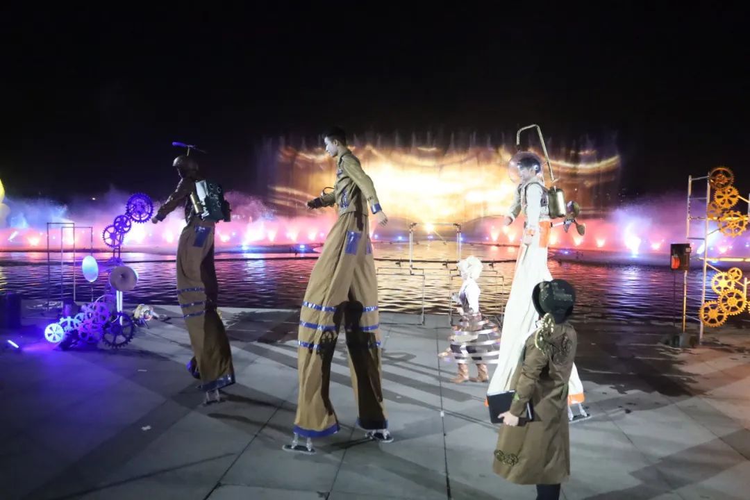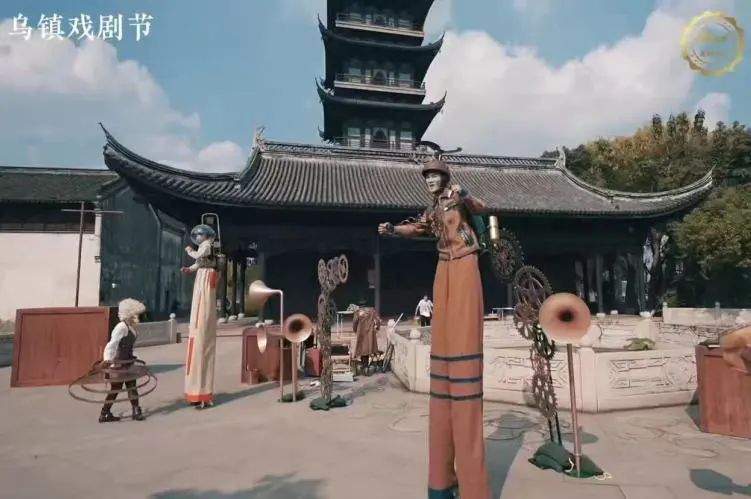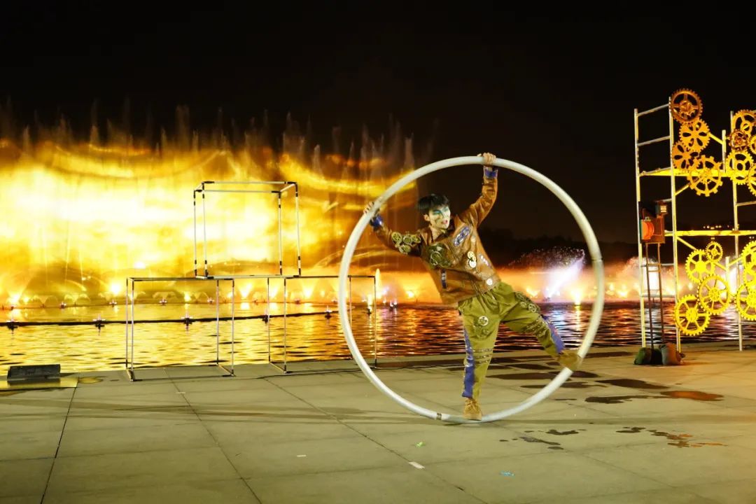 魔力大环,一个2米高的大型圆环被飞行员缓缓推出,来吧,让大家看看飞行员是怎样克服旋转和人体极限的。飞行员站在大环之上,与大环一起旋转,悠扬的旋律与柔美的表演。此刻蒸汽先生与观众一起,端坐在舞台地上静静欣赏。第十届乌镇戏剧节嘉年华表演团队