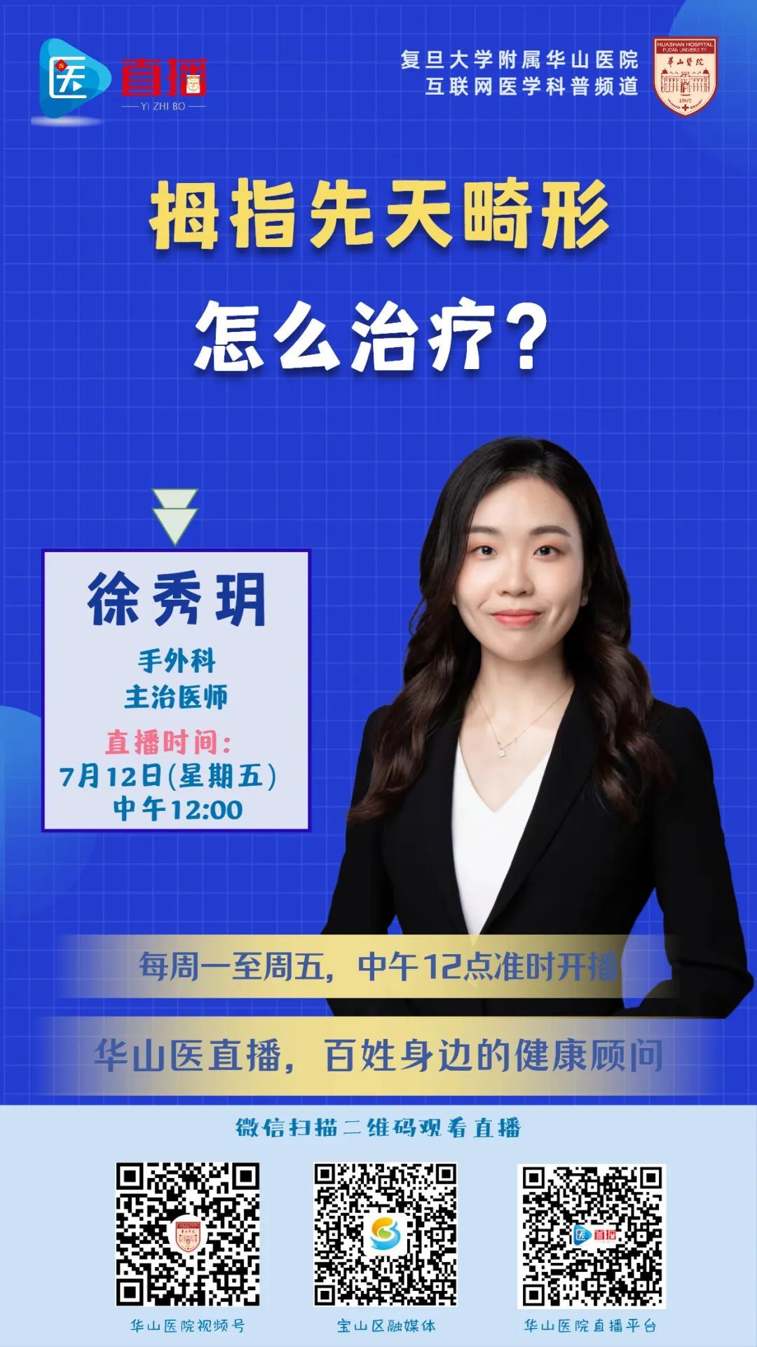 拇指发挥着手功能的大部分作用,如果有两个拇指怎么办?如果拇指先天不能活动怎么办?如果拇指先天性细小、不能活动怎么办?本期医直播,徐秀玥将介绍常见的拇指畸形疾病及其治疗方案。