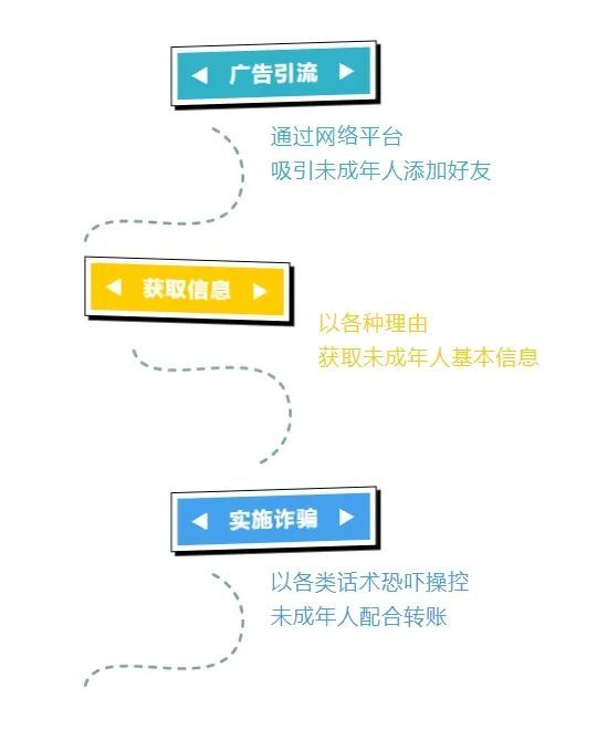 冒充工作人员、律师、甚至公检法人员,以“违规操作致账号冻结,需及时解绑”、“需配合警方调查排除犯罪嫌疑,否则会面临刑事处罚”、“侵犯明星个人隐私,会被追究法律责任”等话术恐吓,利用未成年人畏惧心理,欺骗或胁迫未成年人以视频通话、屏幕共享等方式,远程操控孩子操作家长手机,配合转账、消费。